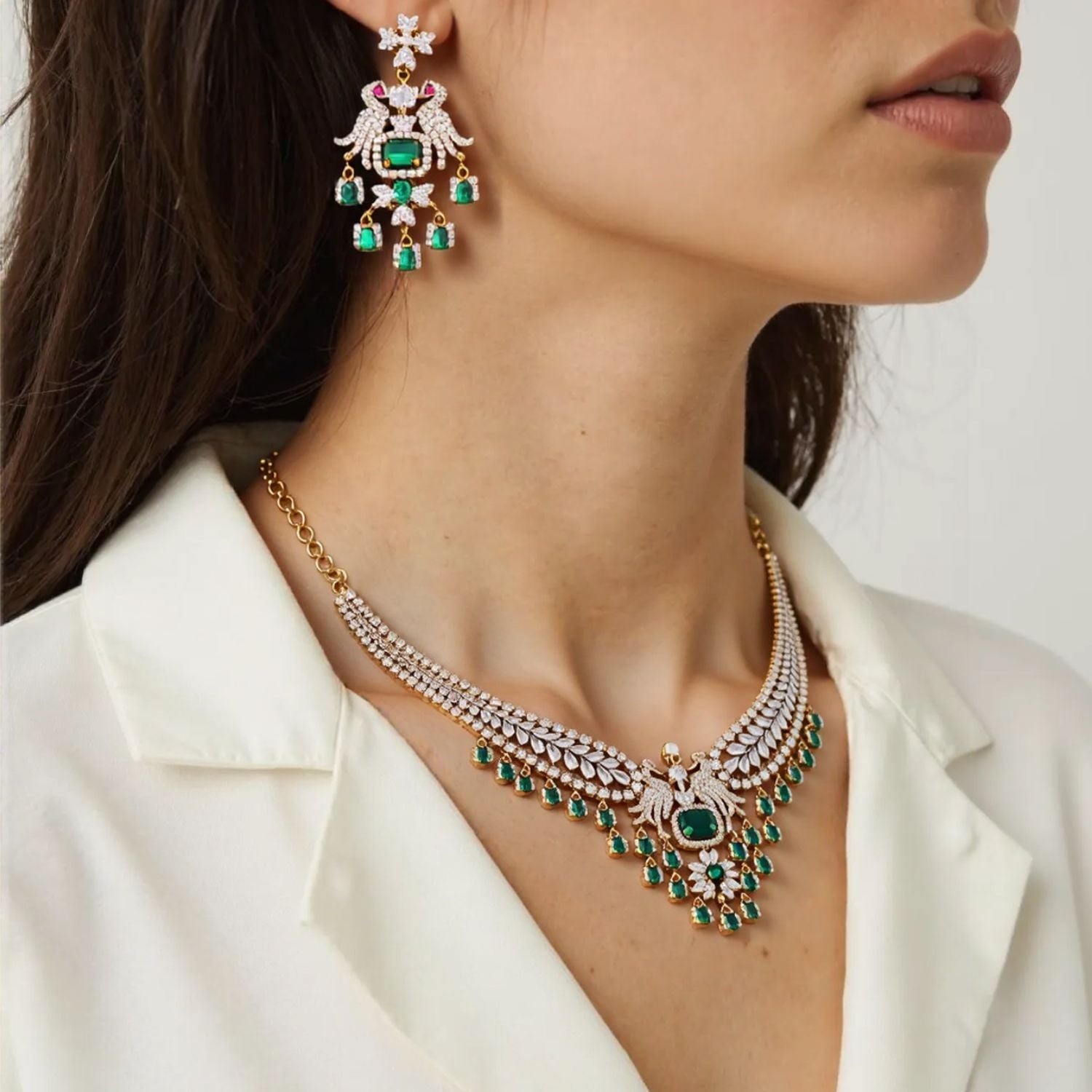 Premium quality American Diamond set with superb gemstones crafted for festive weddings and your upcoming special occasions.