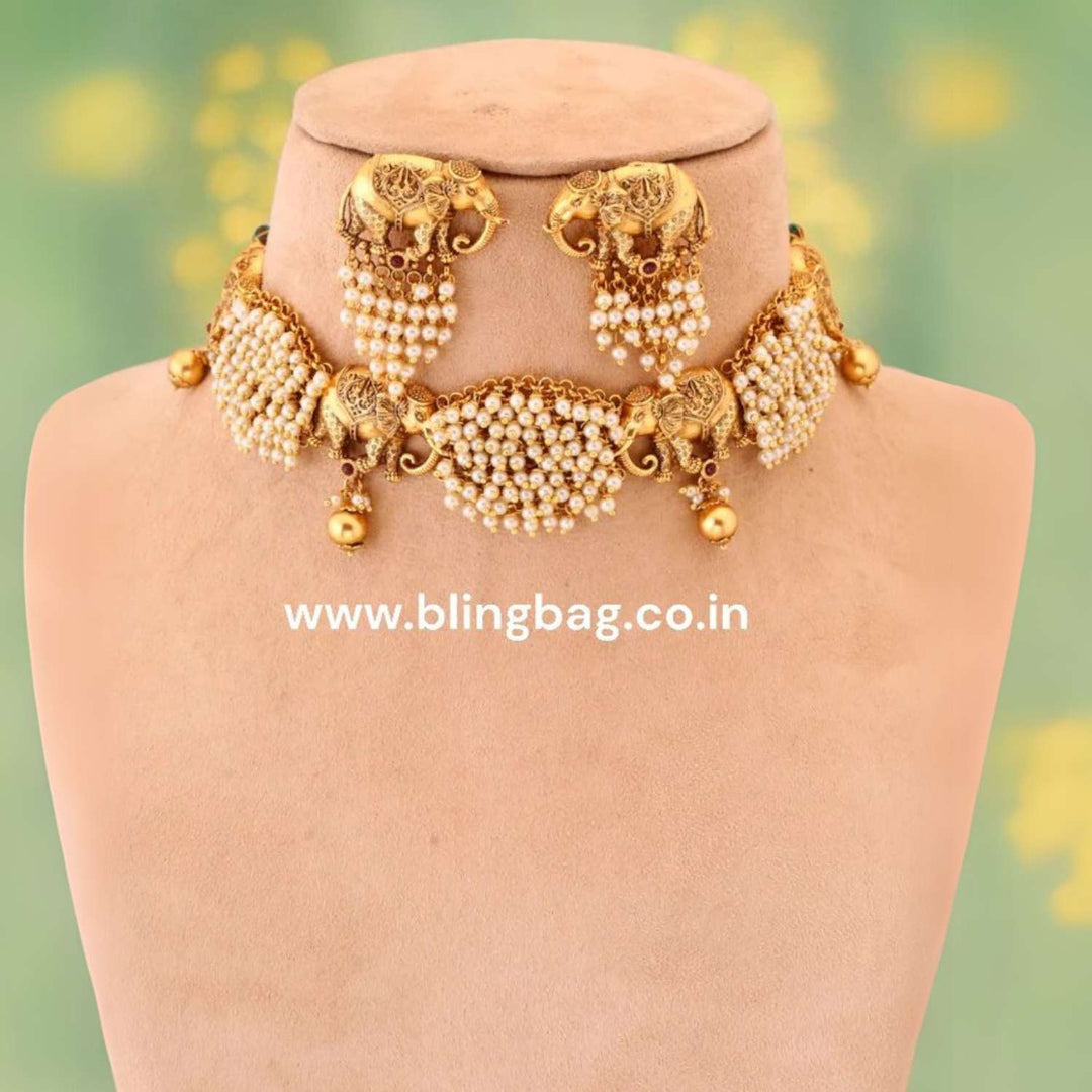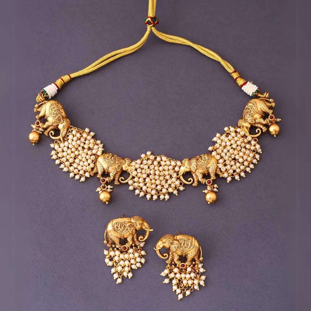 Golden Hathi Temple Jewellery Set