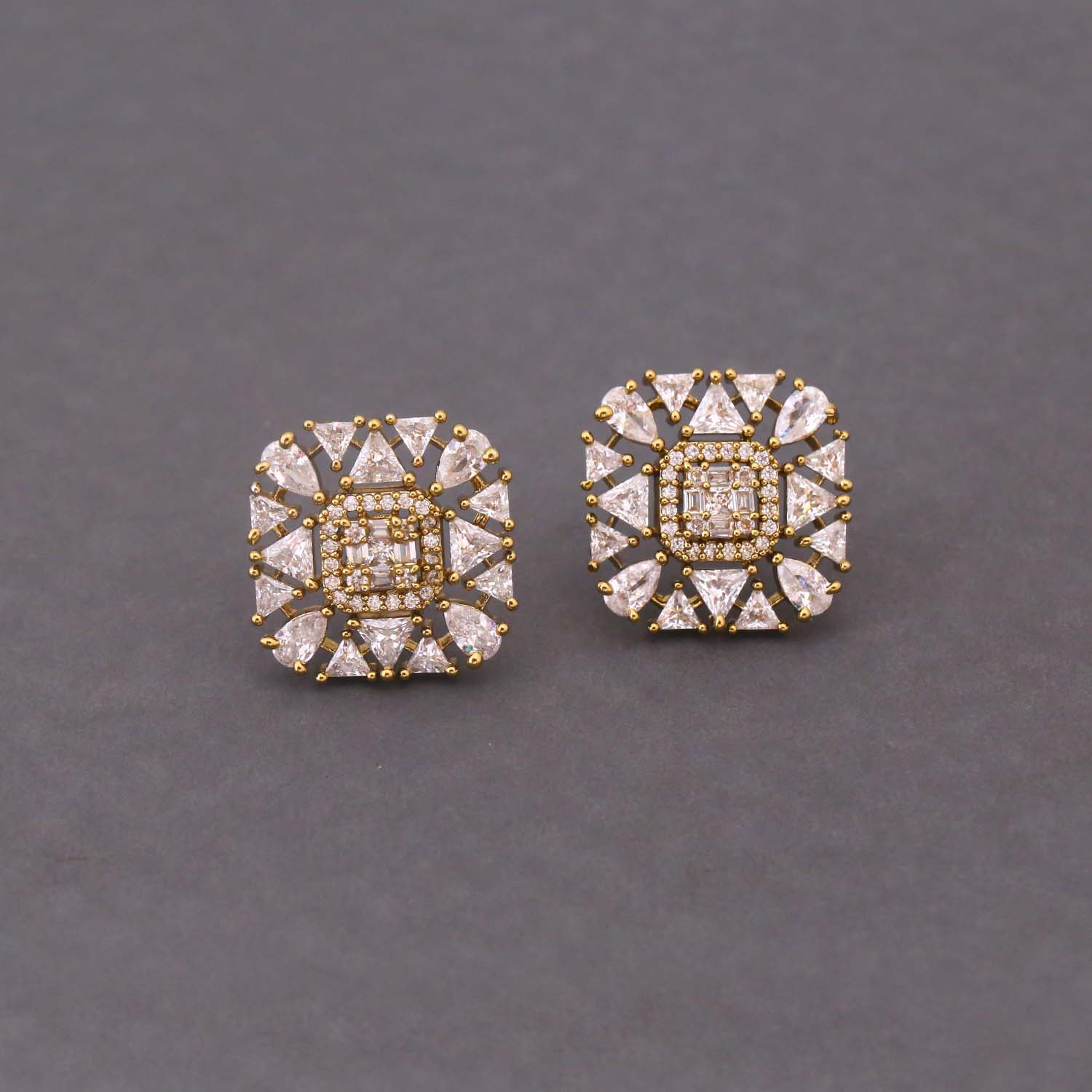 Sparkling elegance meets affordability with these exquisite American diamond earrings. Crafted with precision and adorned with dazzling simulated diamonds, these earrings effortlessly elevate any ensemble. The perfect accessory for adding a touch of glamour and sophistication to your look."