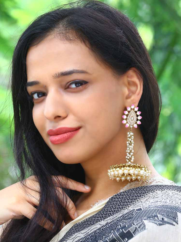 Traditional jhumki earrings with a priceless charm and unique embellishment of kundans, beads and pearls! Just the right choice for every traditional outfit!Dimensions