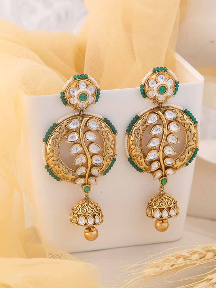 Fulfill your desire to style the most classic and pure form of ethnic jewellery with these Gold Plated rustic looking pair of earrings that have the impression of Godliness all over it!