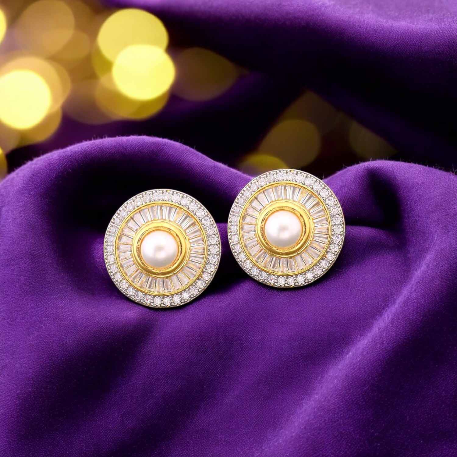Sparkling elegance meets affordability with these exquisite American diamond earrings. Crafted with precision and adorned with dazzling simulated diamonds, these earrings effortlessly elevate any ensemble. The perfect accessory for adding a touch of glamour and sophistication to your look."