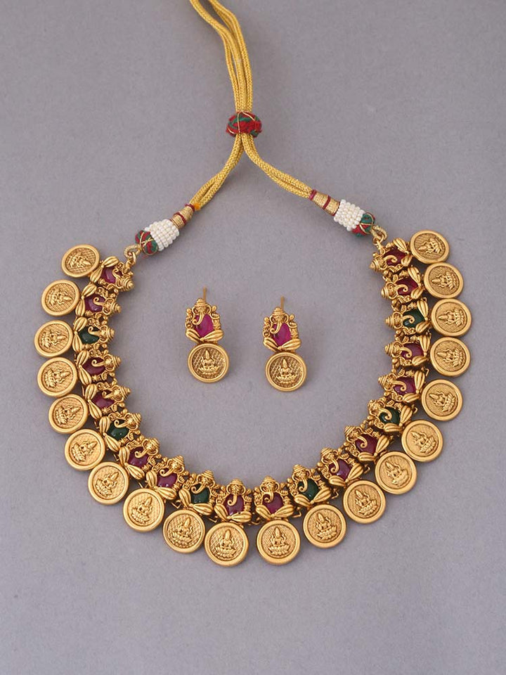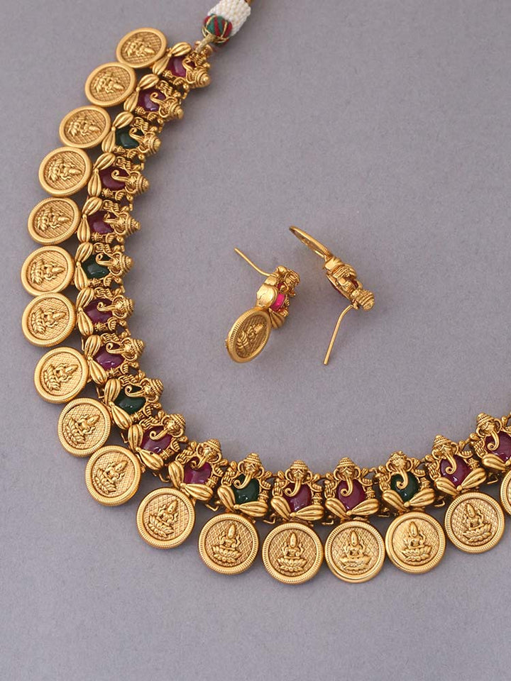 The Emerald Vrishabha Temple Jewellery Set embodies opulence and heritage with its exquisite craftsmanship. A resplendent display of emeralds and intricate temple motifs, this set exudes regal allure, perfect for grand occasions.