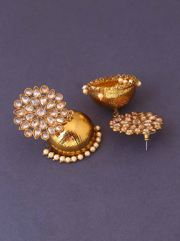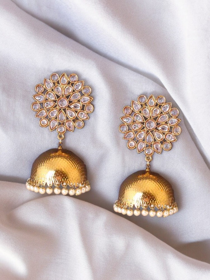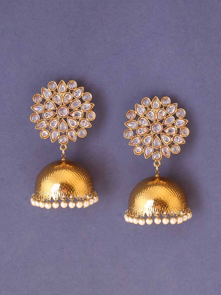 The pair has a beautiful glossy jhumki and a floral motif. The pair is a gorgeous statement accessory. do not miss it as its shine and glossy look will transform you into a diva instantly