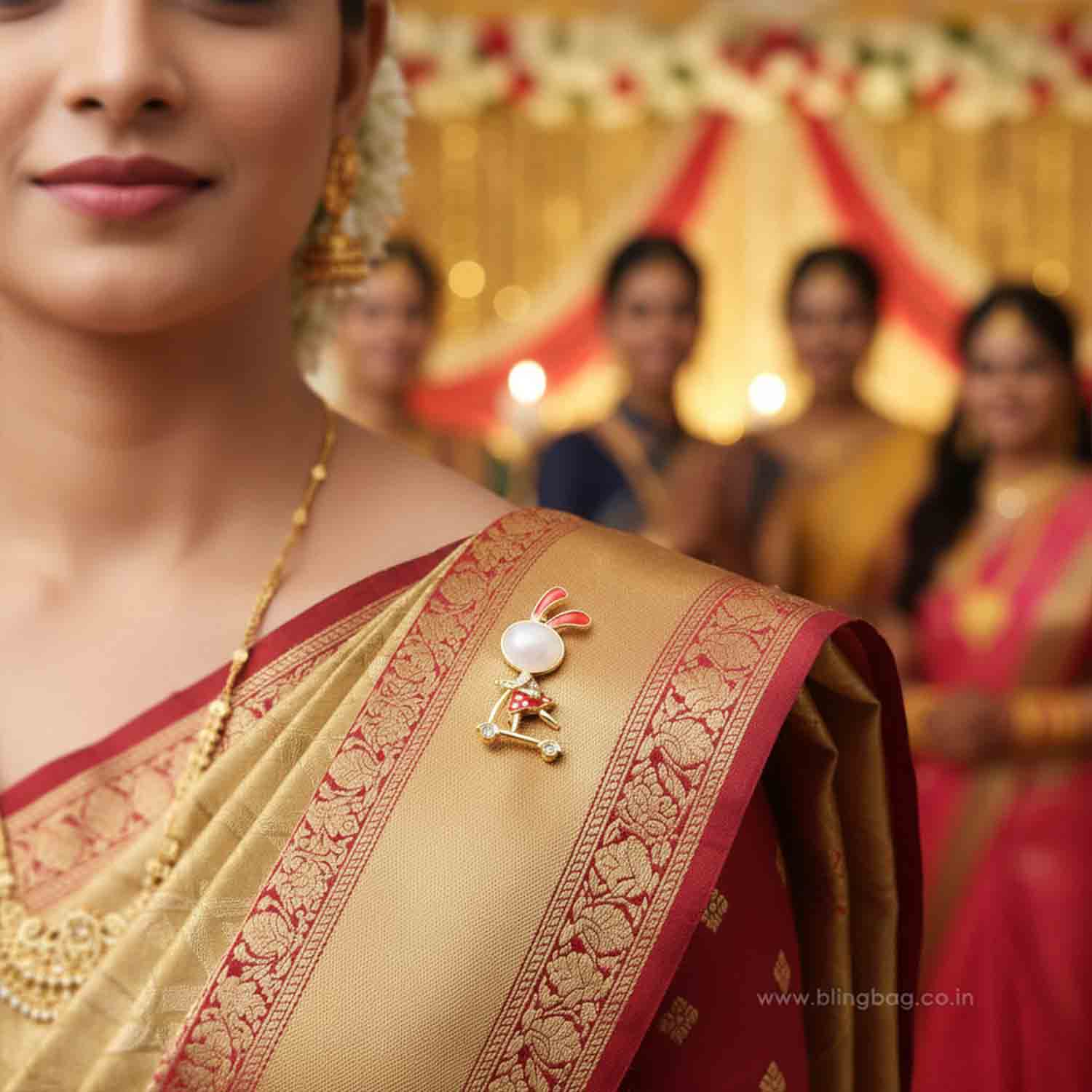 Pin this brooch on sarees, dupattas, jackets, or handbags to add a quirky and elegant touch to your outfit, especially for casual gatherings or festive styling.