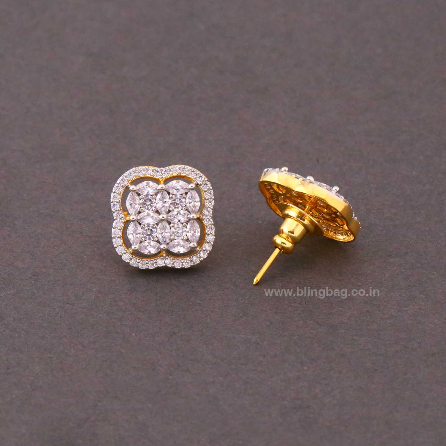 Sparkling elegance meets affordability with these exquisite American diamond earrings. Crafted with precision and adorned with dazzling simulated diamonds, these earrings effortlessly elevate any ensemble. The perfect accessory for adding a touch of glamour and sophistication to your look.