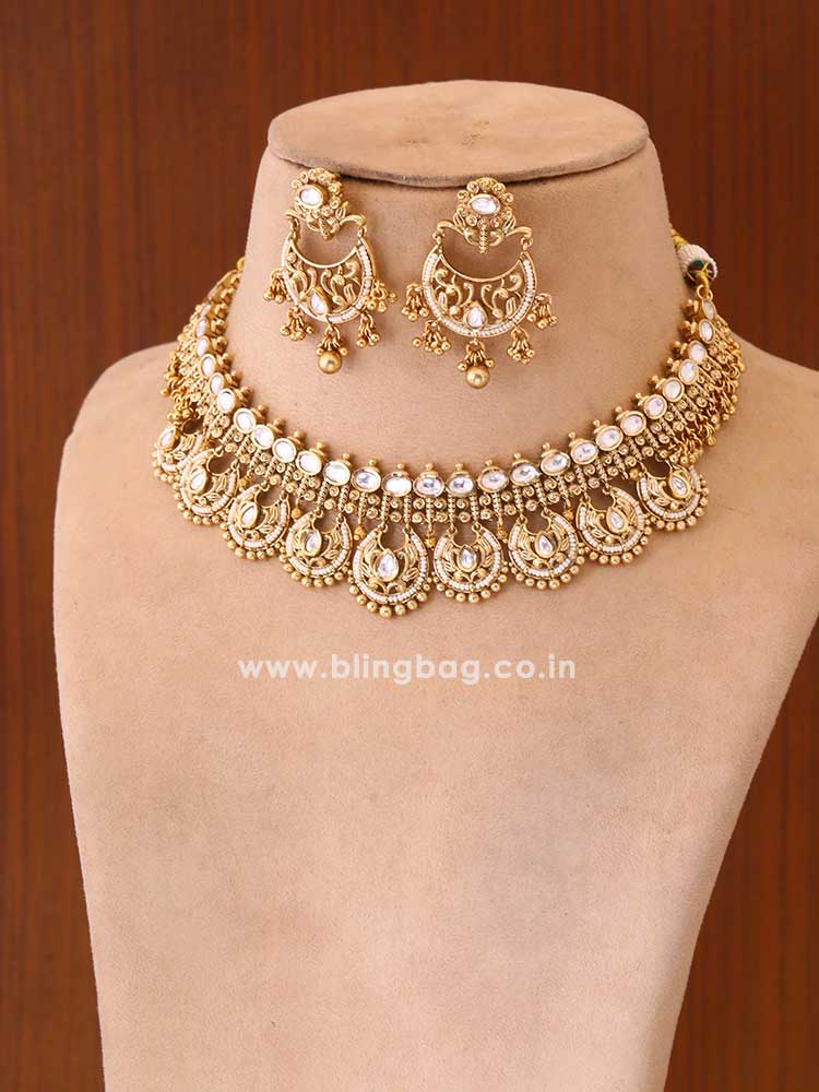 The Rajwadi Collection features exquisite necklaces inspired by the rich heritage and artistry. Each piece showcases intricate craftsmanship, with precious metals and gemstones adorning mythological motifs and captivating designs.