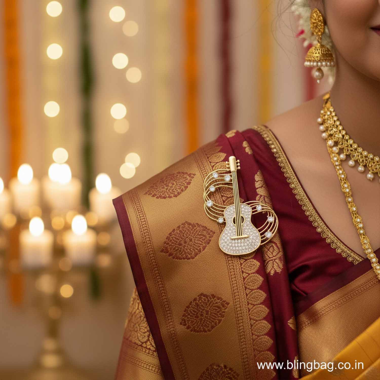 Pin it on a blazer, saree pallu, or dress for an expressive and stylish look. It also pairs wonderfully with western outfits—try it on a denim jacket or handbag for a trendy musical vibe. Ideal for concerts, celebrations, or even gifting to someone who lives and breathes music.