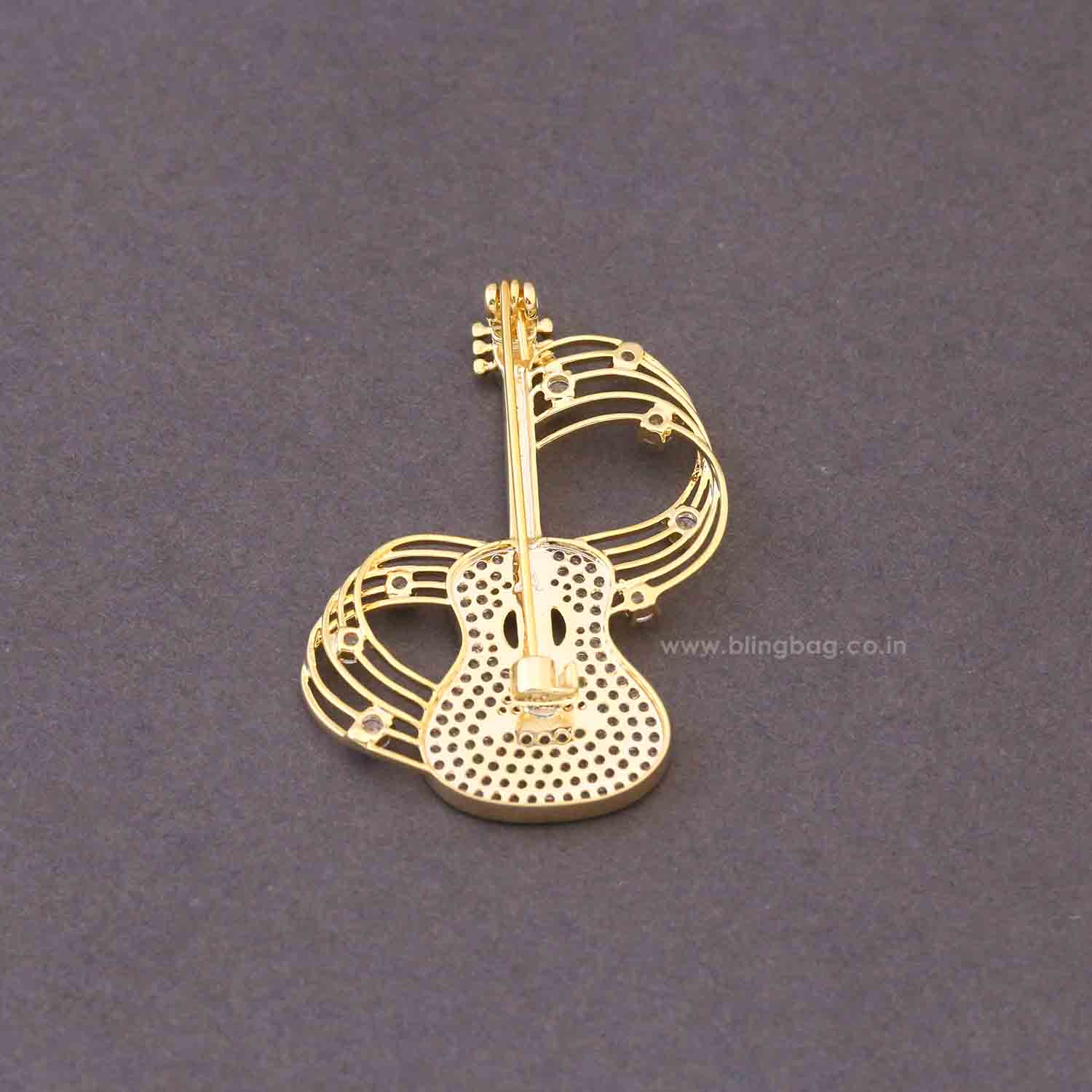 Strike the right chord of elegance with this beautifully designed guitar brooch. Its sparkling stone-studded body paired with flowing musical note details gives it a charming and artistic appeal. Perfect for music lovers and fashion enthusiasts, this brooch adds a creative edge to any outfit while maintaining a touch of class and glamour. A unique accessory that instantly stands out and makes a memorable style statement.