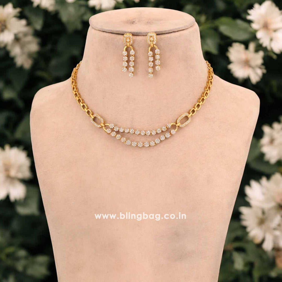 Discover glamour with the new Golden Tvesha Antique Jewellery Set.It's a timeless and elegant addition to any wardrobe. Elevate your style with this luxurious and exclusive set.