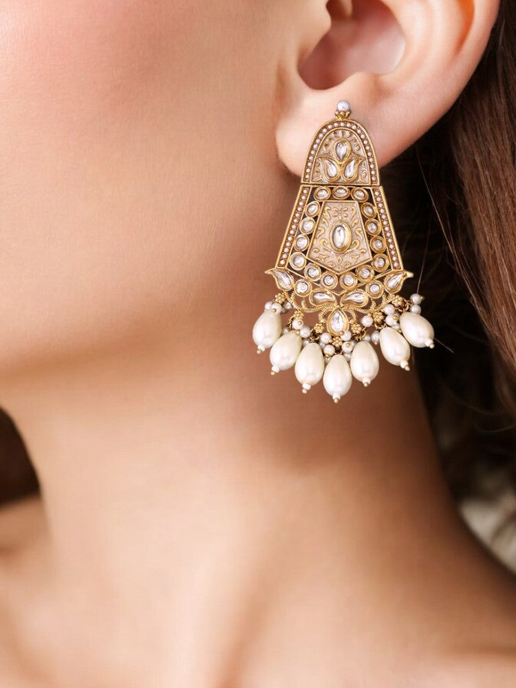 Fulfill your desire to style the most classic and pure form of ethnic jewellery with these Gold Plated rustic looking pair of earrings that have the impression of Godliness all over it!