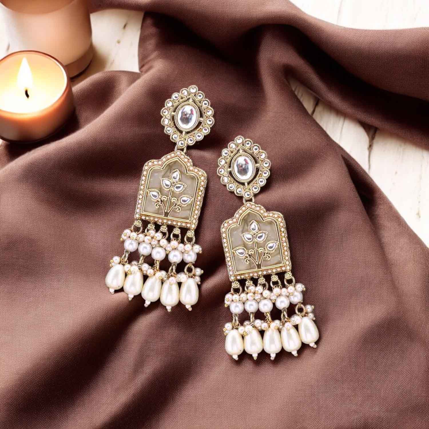 Elevate your ensemble by pairing these earrings with a flowing chiffon dupatta and a classic kurta for daytime elegance. Transition seamlessly into evening wear by complementing them with a silk saree, allowing the earrings to be the focal point of your look.