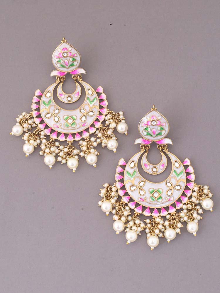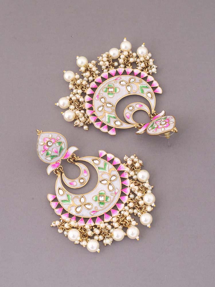 Traditional chandbali earrings with a priceless charm and unique embellishment of stones, crystals and pearls! Just the right choice for every traditional outfit!