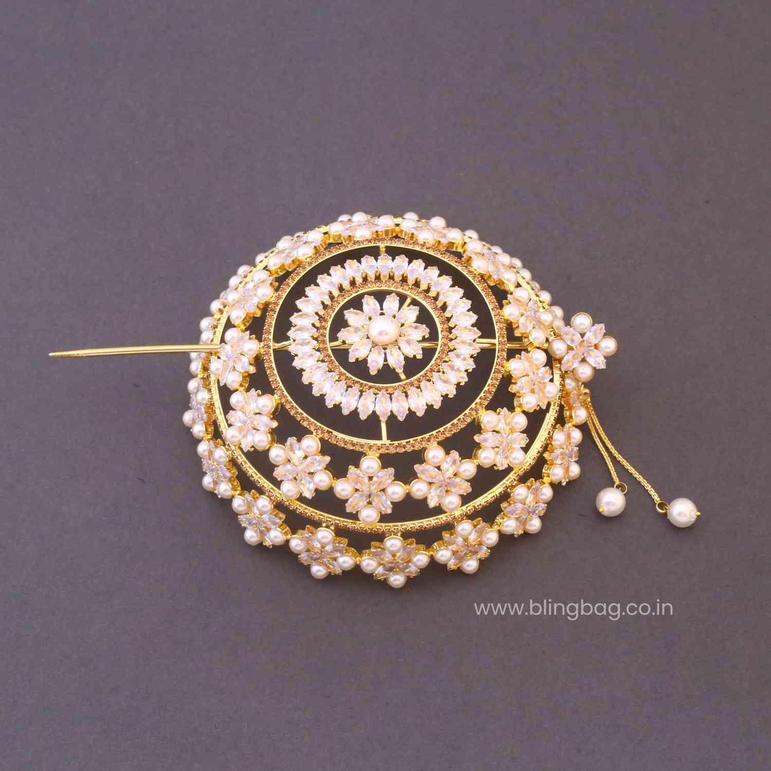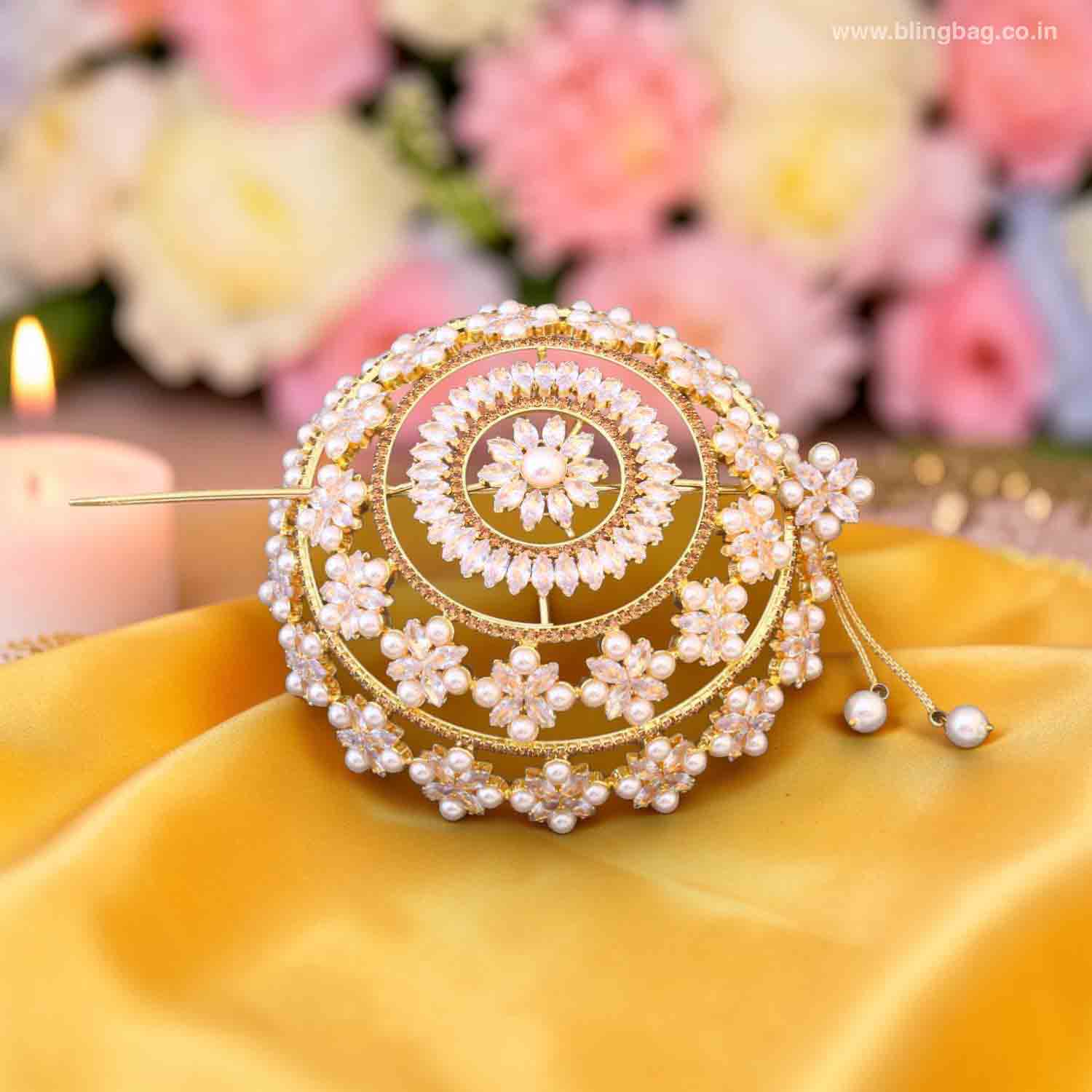 Enhance your bridal or festive bun by placing this accessory at the centre of your Juda for a stunning, polished look. Pair it with traditional sarees or lehengas to complete your ethnic ensemble.