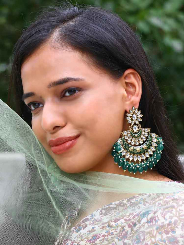Traditional jhumki earrings with a priceless charm and unique embellishment of stones, crystals and pearls! Just the right choice for every traditional outfit!