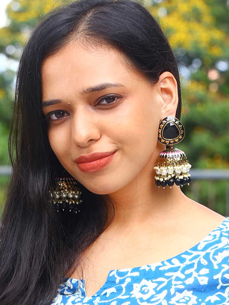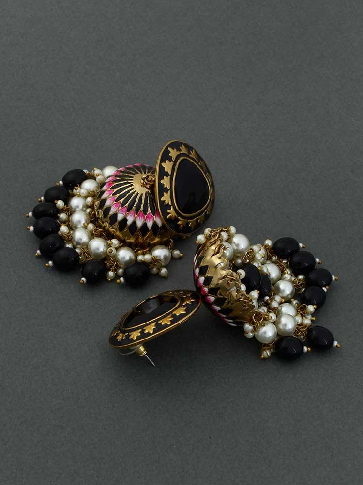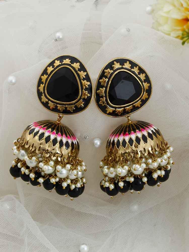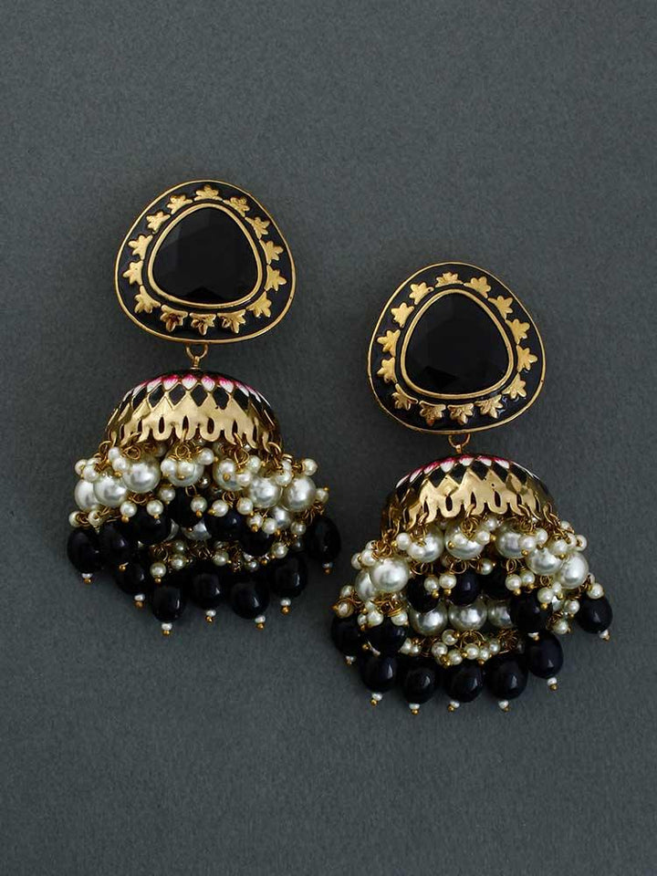 Traditional jhumkis with a priceless charm and unique embellishment of stones, crystals and pearls! Just the right choice for every traditional outfit!