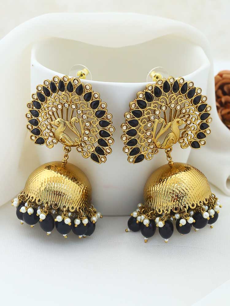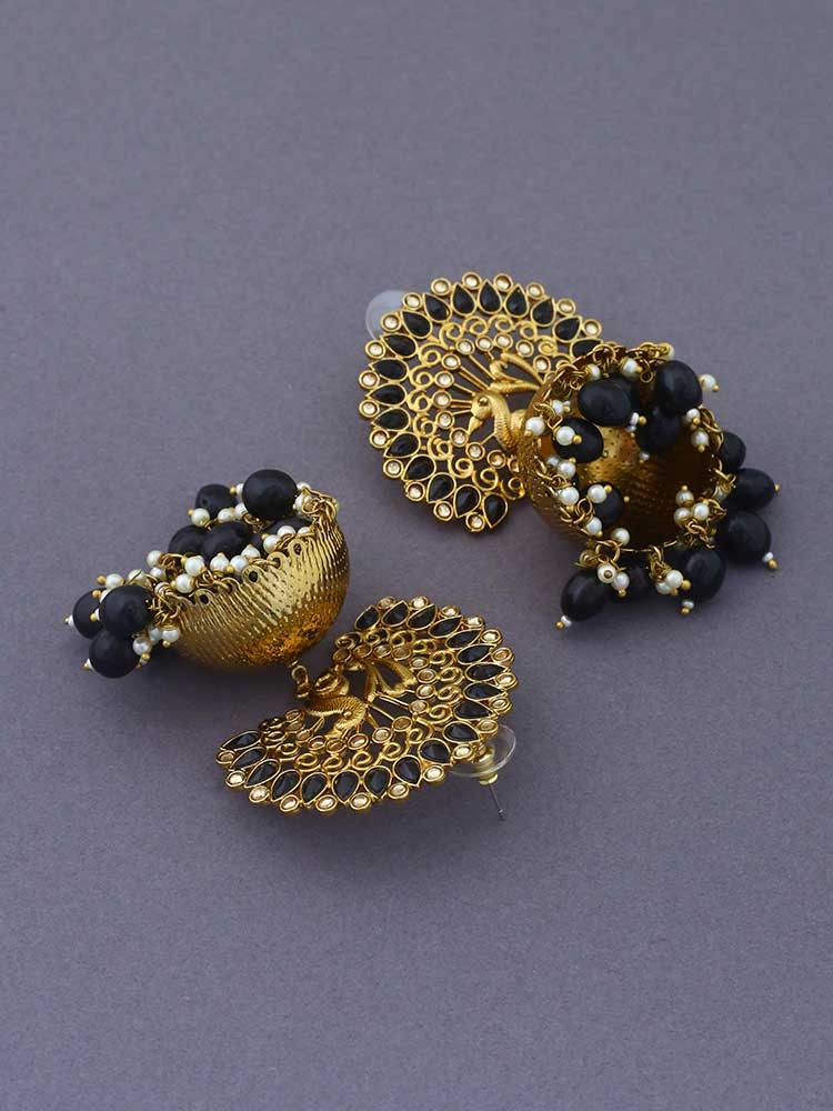 Jet Mayu Jhumki Earrings