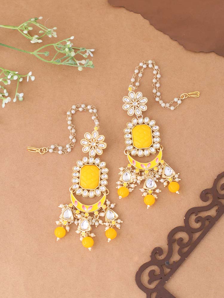 Fulfill your desire to style the most classic and pure form of ethnic jewellery with these Gold Plated rustic looking pair of earrings that have the impression of Godliness all over it!