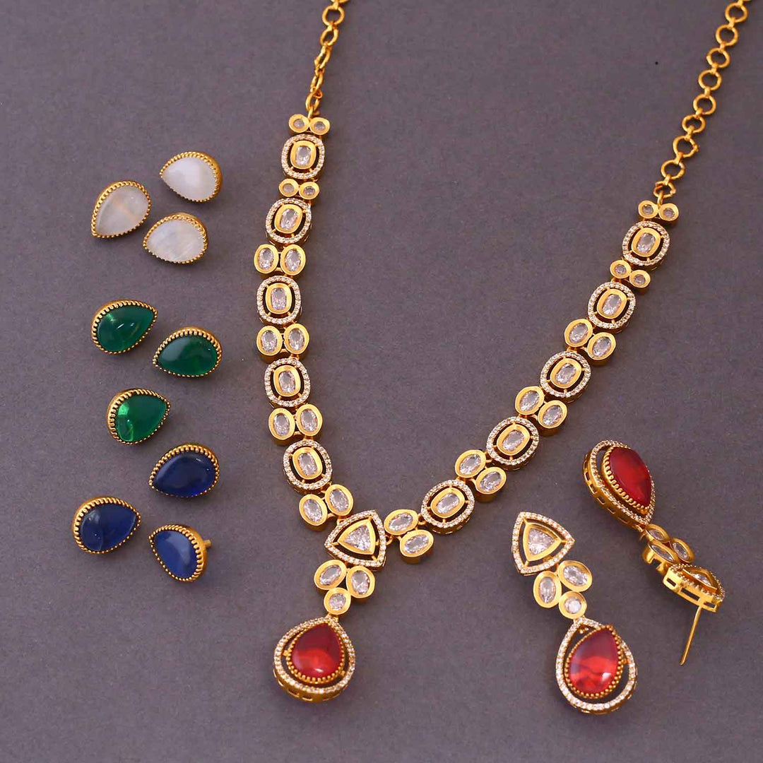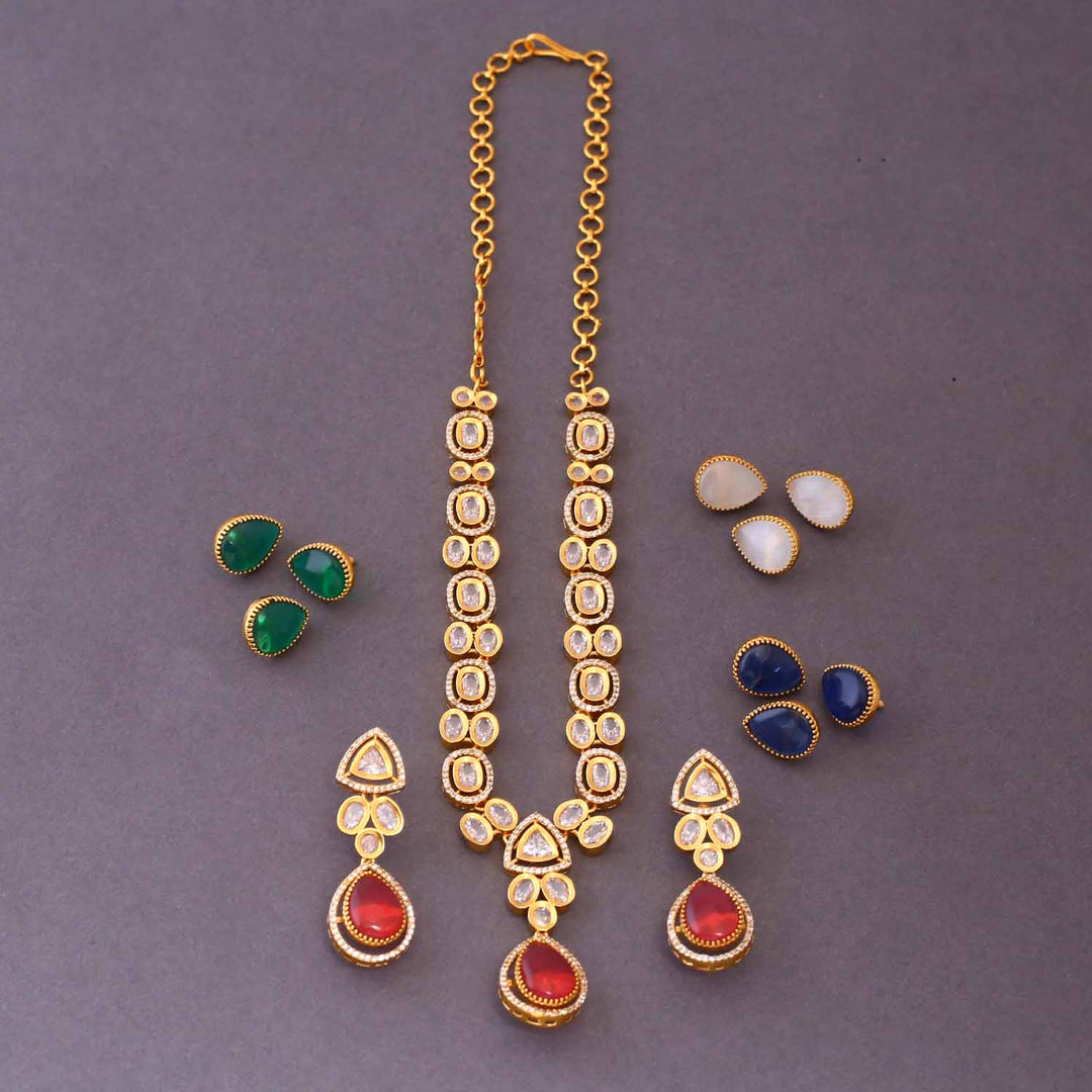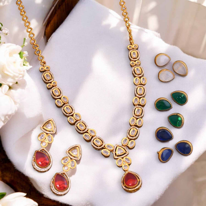 Discover glamour with the new Multicolor Aarusha Antique Jewellery Set. it's a timeless and elegant addition to any wardrobe. Elevate your style with this luxurious and exclusive set.