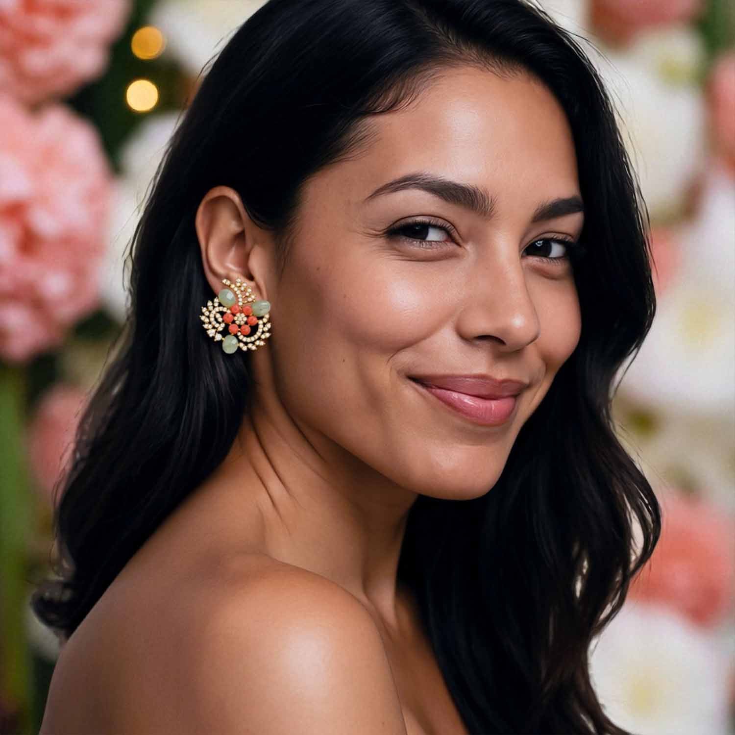 Let these Chandbalis be the focal point by pairing them with a solid-colored silk saree or a sophisticated evening gown. Consider an updo to showcase their intricate beauty.