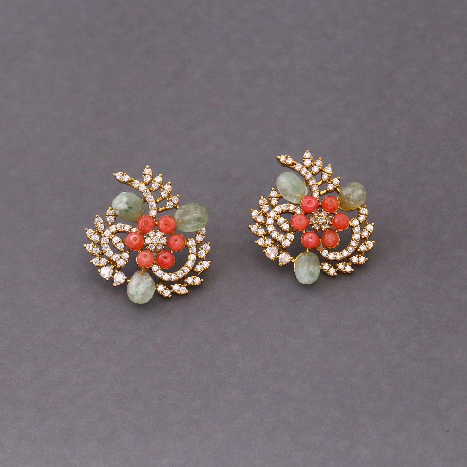 Evoke the opulence of the Victorian era with our Multicolor Anjana Victorian Studs. These exquisite earrings showcase a traditional Studs. silhouette, intricately detailed with delicate metalwork and adorned with vibrant emerald-toned accents. Their graceful sway and rich design add a touch of regal charm to any ensemble. Perfect for special occasions or when you desire a statement of timeless elegance.