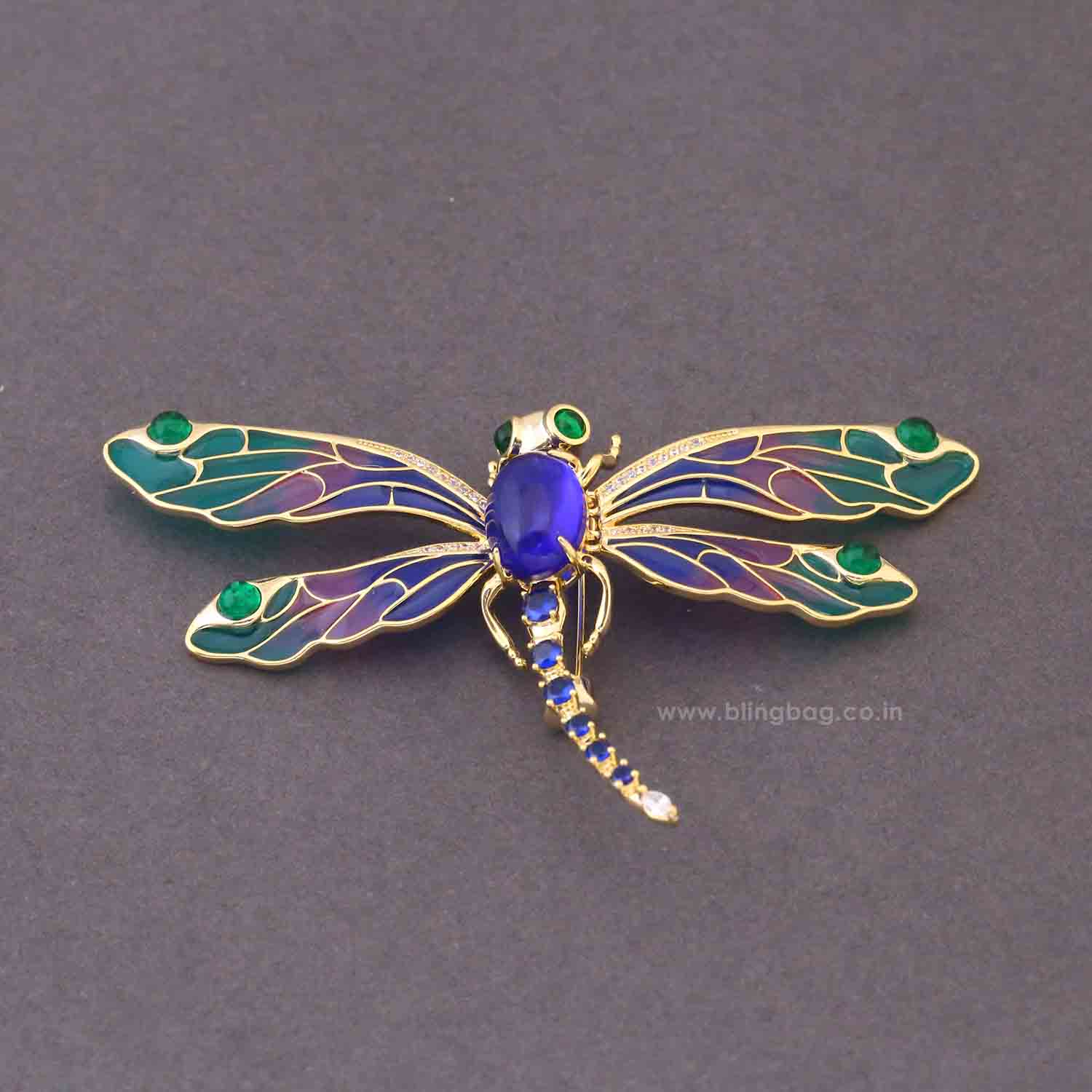 Add a splash of charm and colour to your look with this exquisite dragonfly brooch. Featuring beautifully detailed wings in a blend of rich green and purple hues, paired with a striking deep-blue centre stone, this piece brings a lively and artistic feel to any attire. Its vibrant accents and fine craftsmanship make it a standout accessory for nature lovers and style enthusiasts alike.
