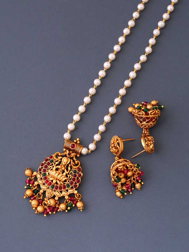 Multicolor Bhuvaneswari Temple Pendant Set - New Arrival