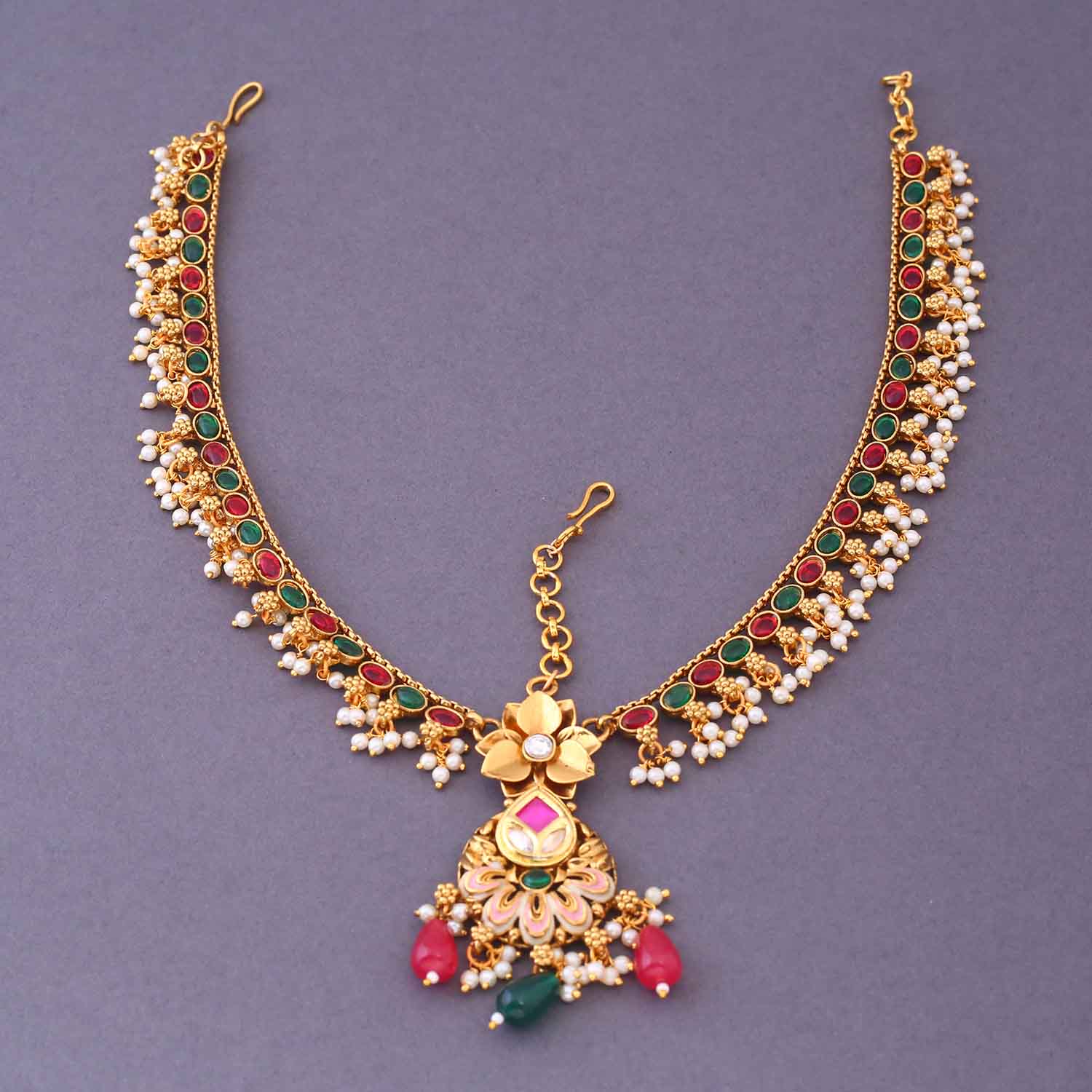 • Matha Patti -  Size: 36*1.5 cm, Pendant Size: 7*2.5 cm, Weight: 65 g