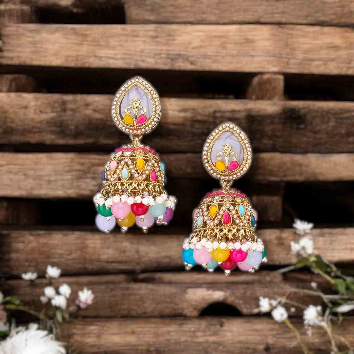 Multicolor Hoor Punjabi Jhumkis