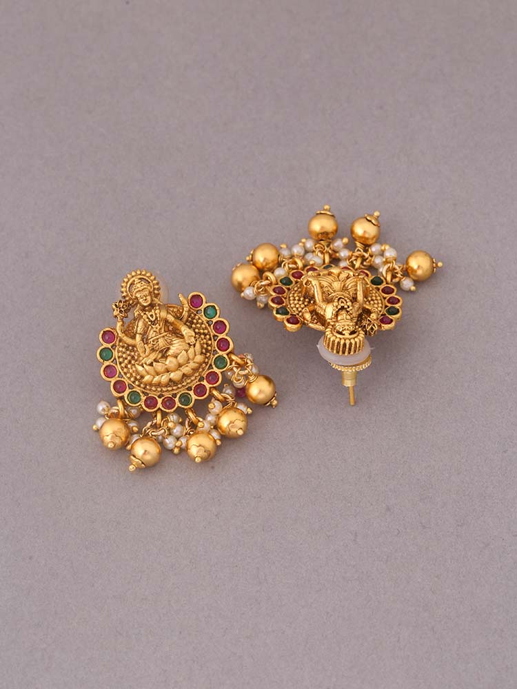 Fulfill your desire to style the most classic and pure form of ethnic jewellery with these Gold Plated rustic looking pair of earrings that have the impression of Godliness all over it!