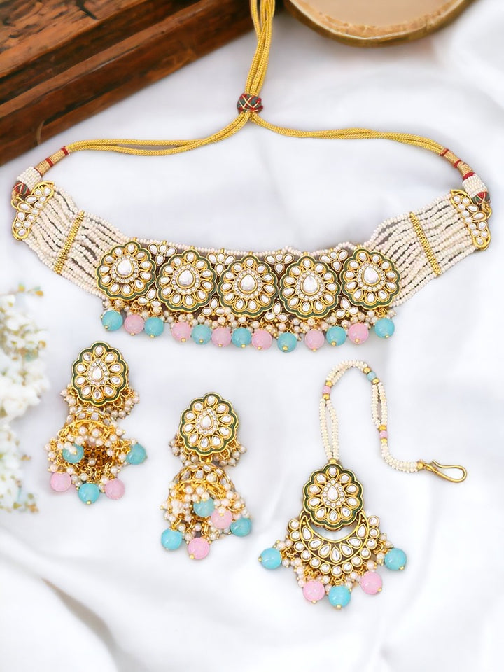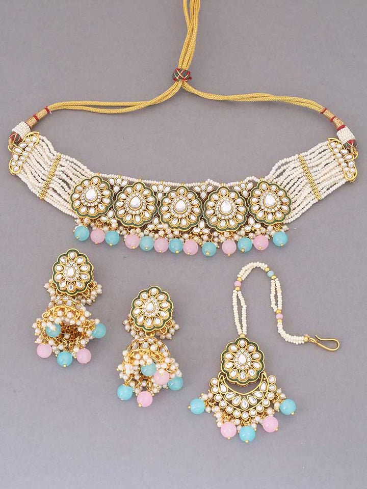 Multicolor Pranami Kundan Jewellery Set