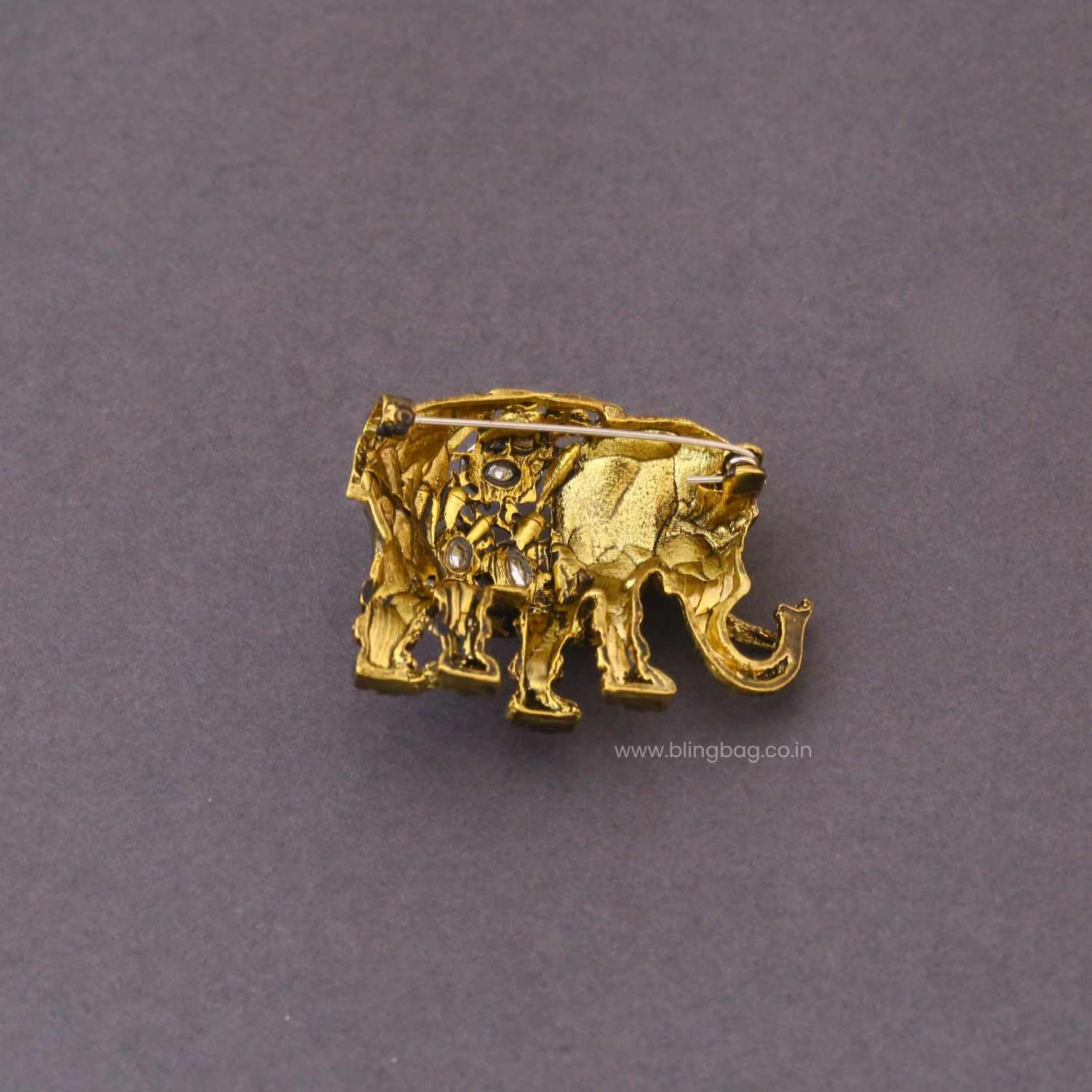 A symbol of strength and prosperity, this elephant-shaped brooch is adorned with vibrant green and pink stones set in intricate detailing. Its royal design and festive charm make it a standout accessory for celebratory occasions.