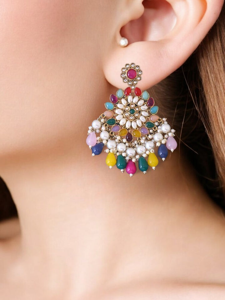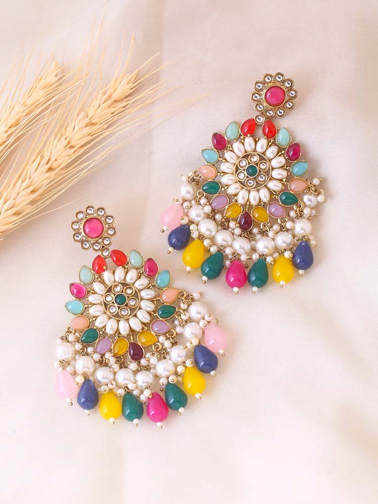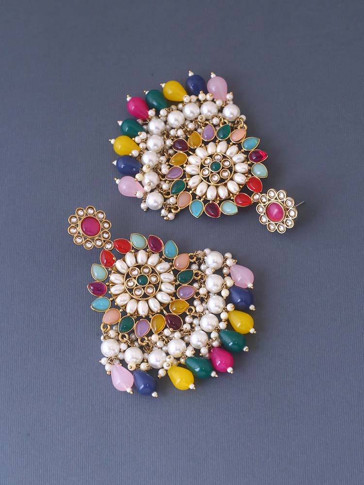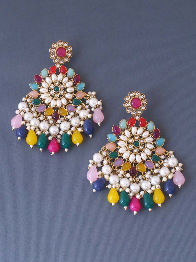 Traditional chaandbalis earrings with a priceless charm and unique embellishment of stones, crystals and pearls! Just the right choice for every traditional outfit!