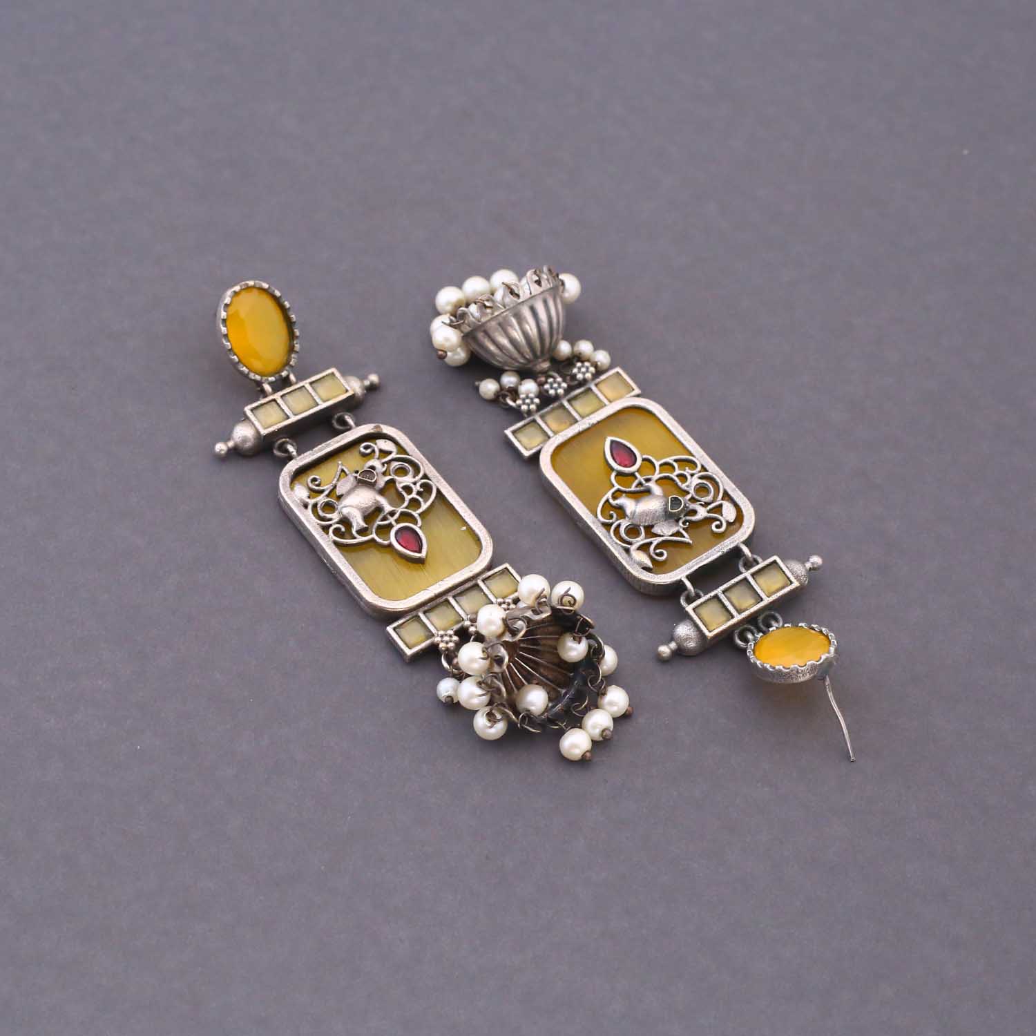 Mustard Mukkishi Oxidised Jhumkis