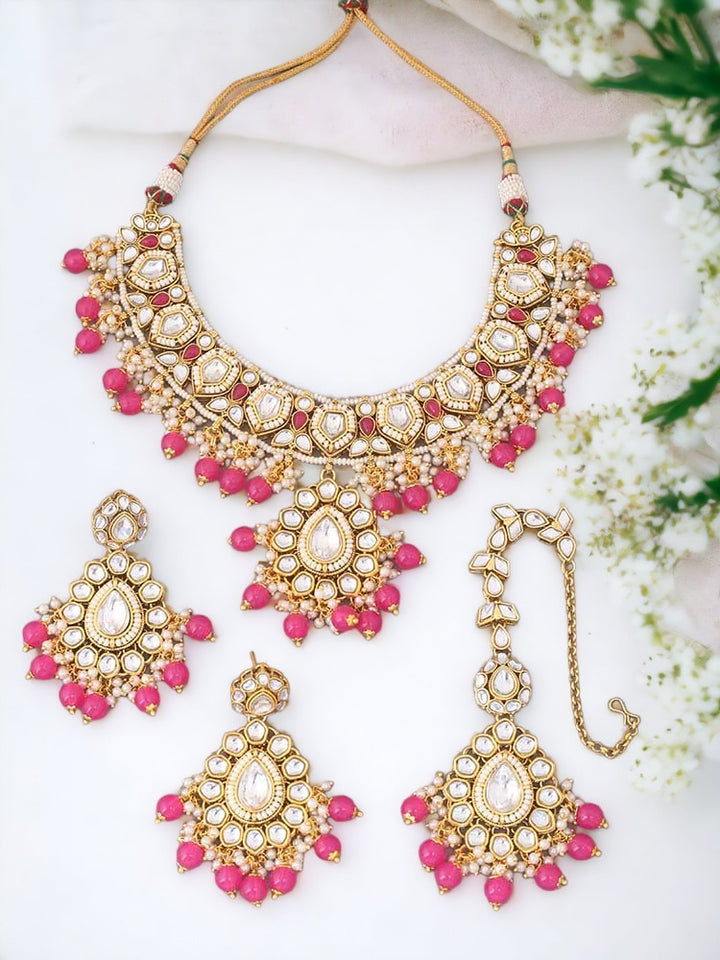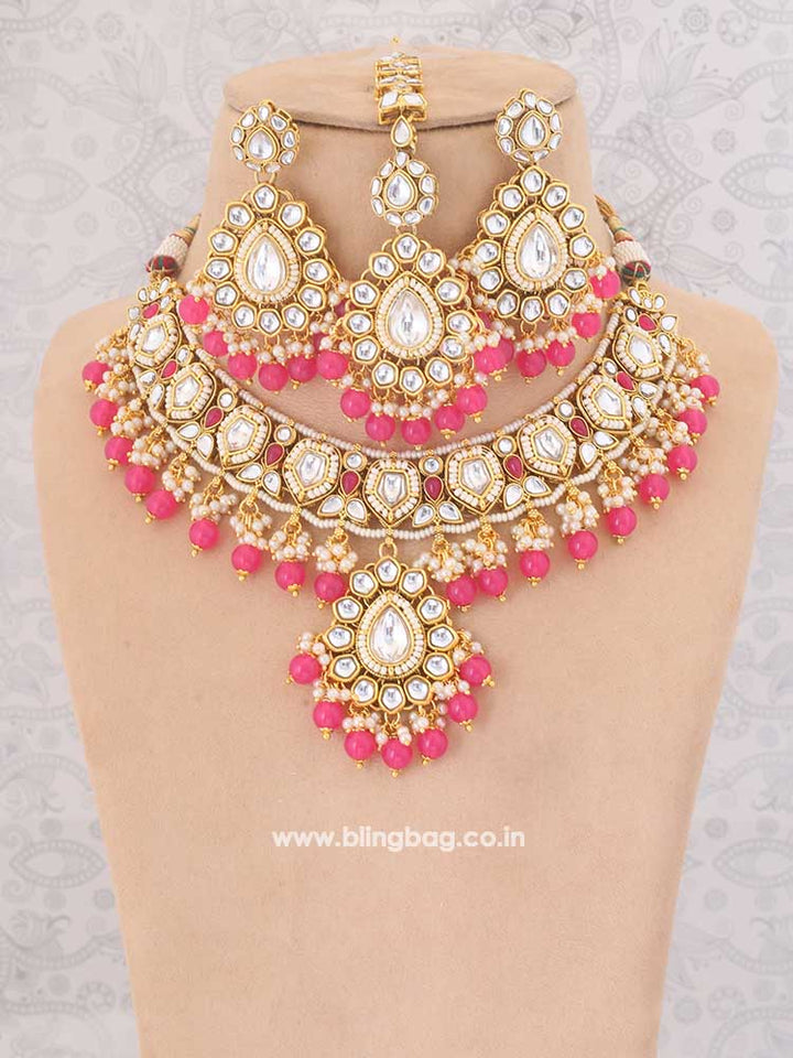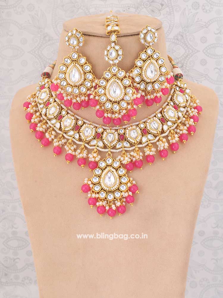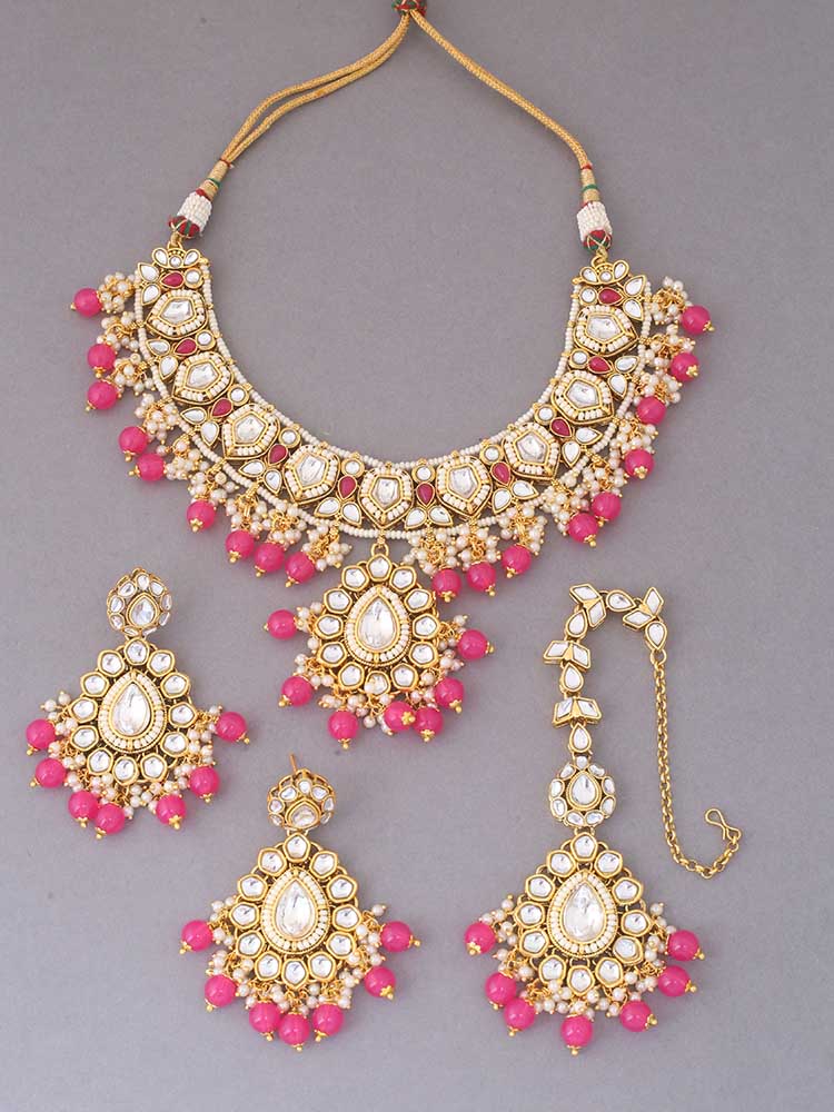 Pink Jiya Kundan Jewellery Set
