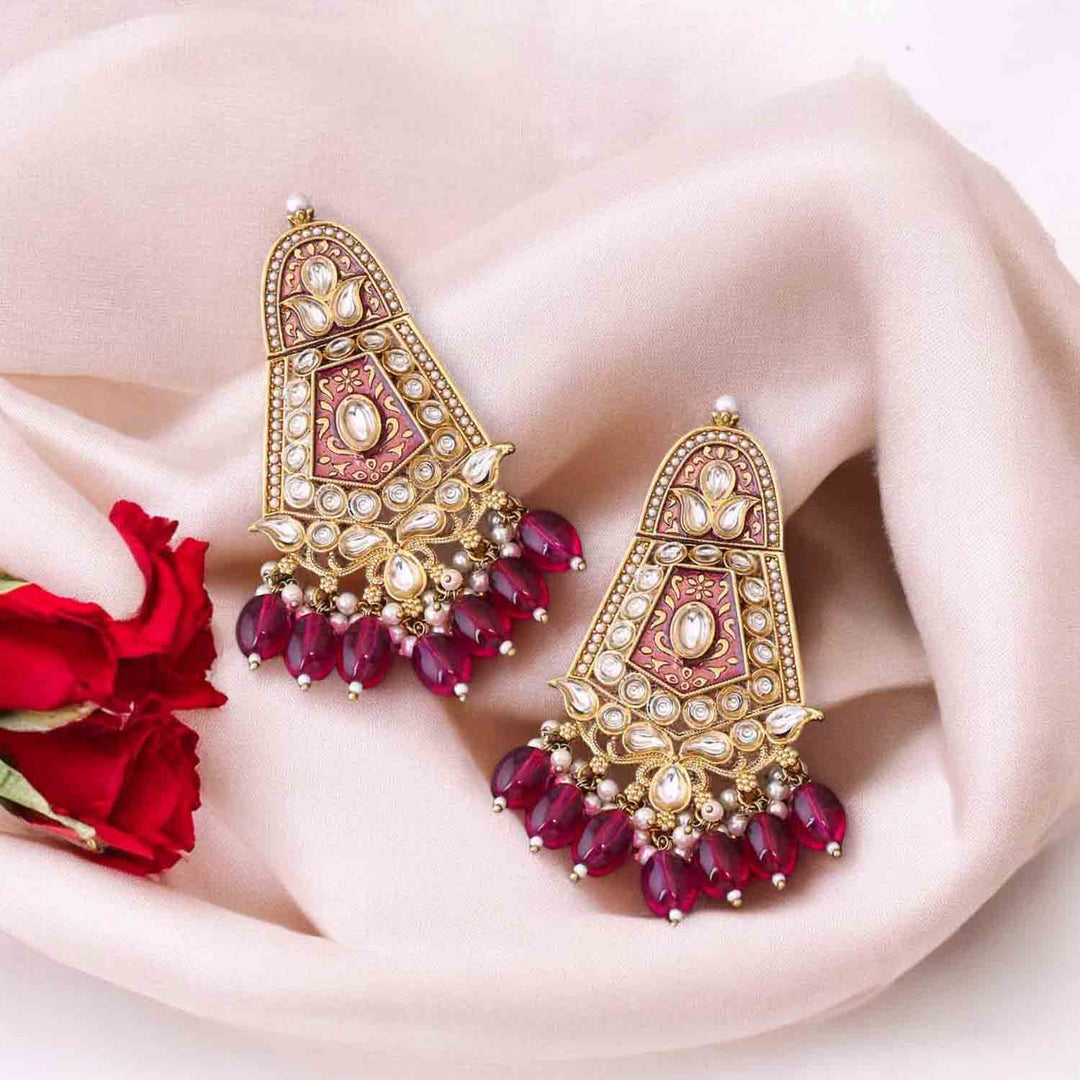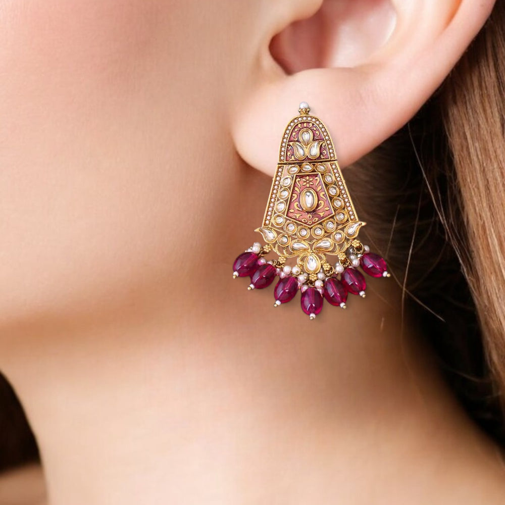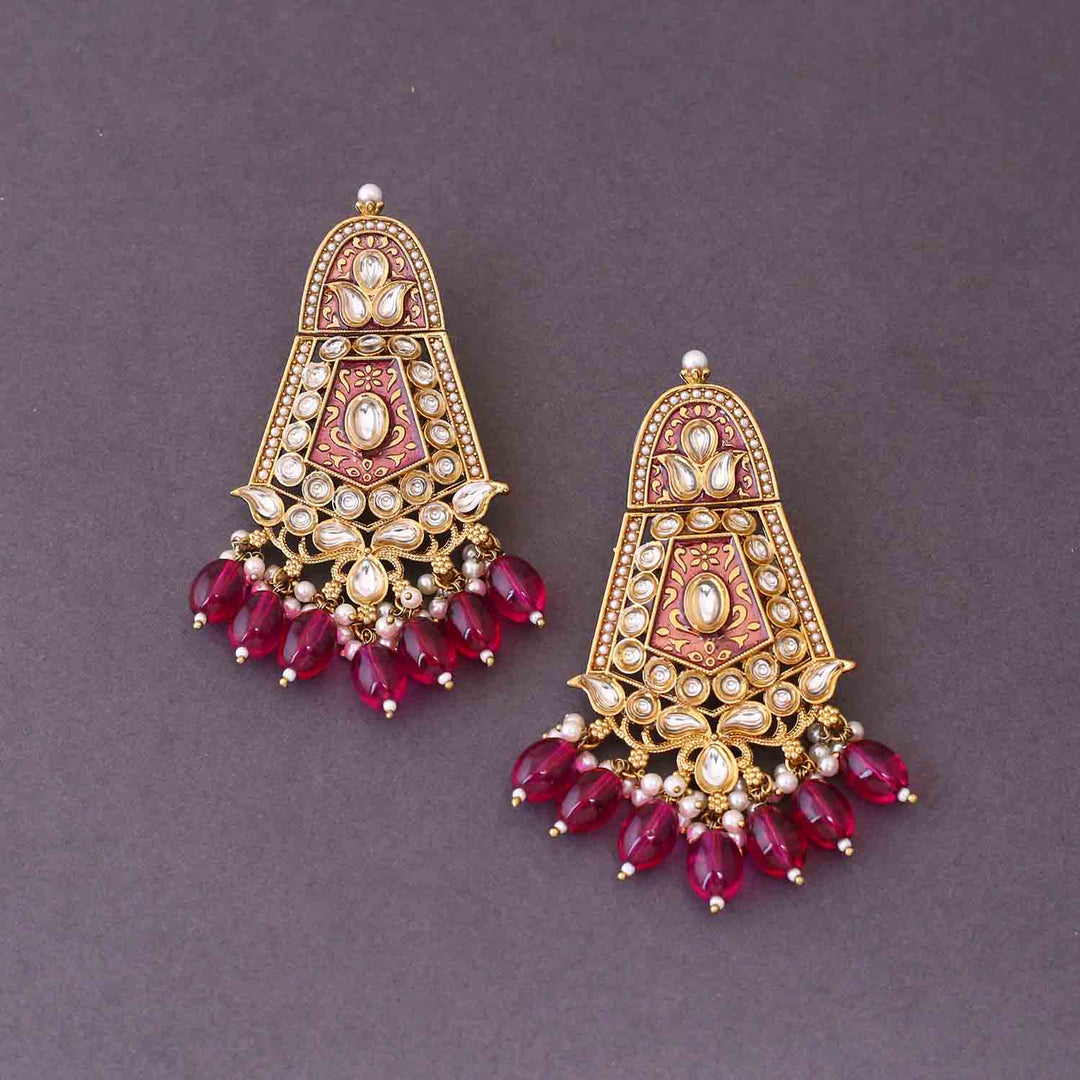 Fulfill your desire to style the most classic and pure form of ethnic jewellery with these Gold Plated rustic looking pair of earrings that have the impression of Godliness all over it!