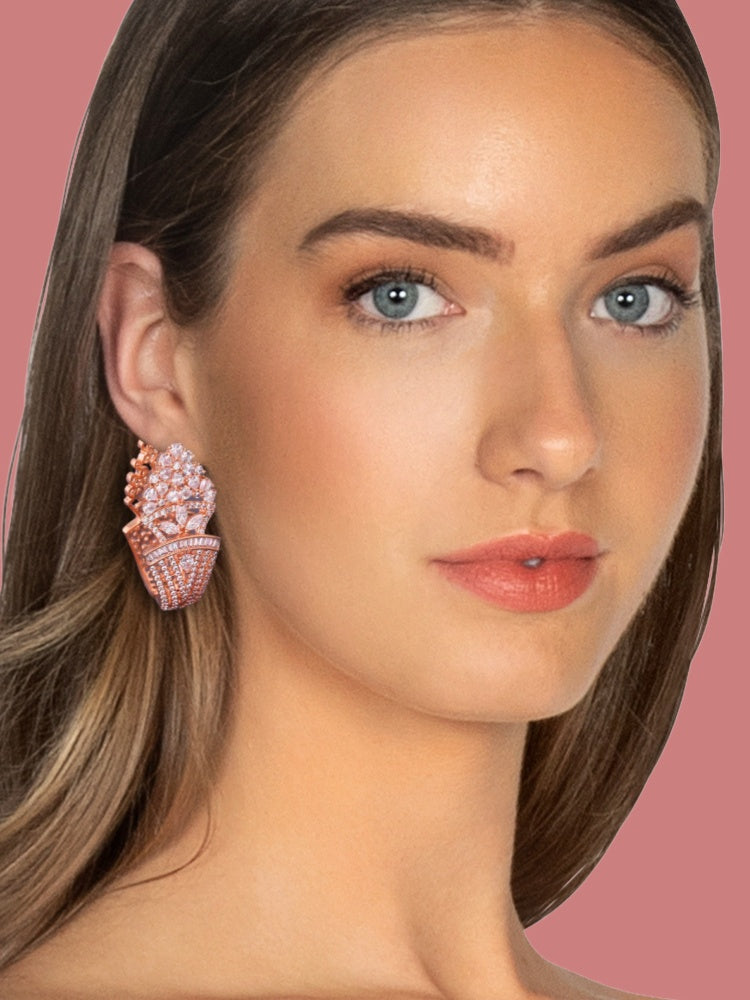 Sparkling elegance meets affordability with these exquisite American diamond earrings. Crafted with precision and adorned with dazzling simulated diamonds, these earrings effortlessly elevate any ensemble. The perfect accessory for adding a touch of glamour and sophistication to your look."