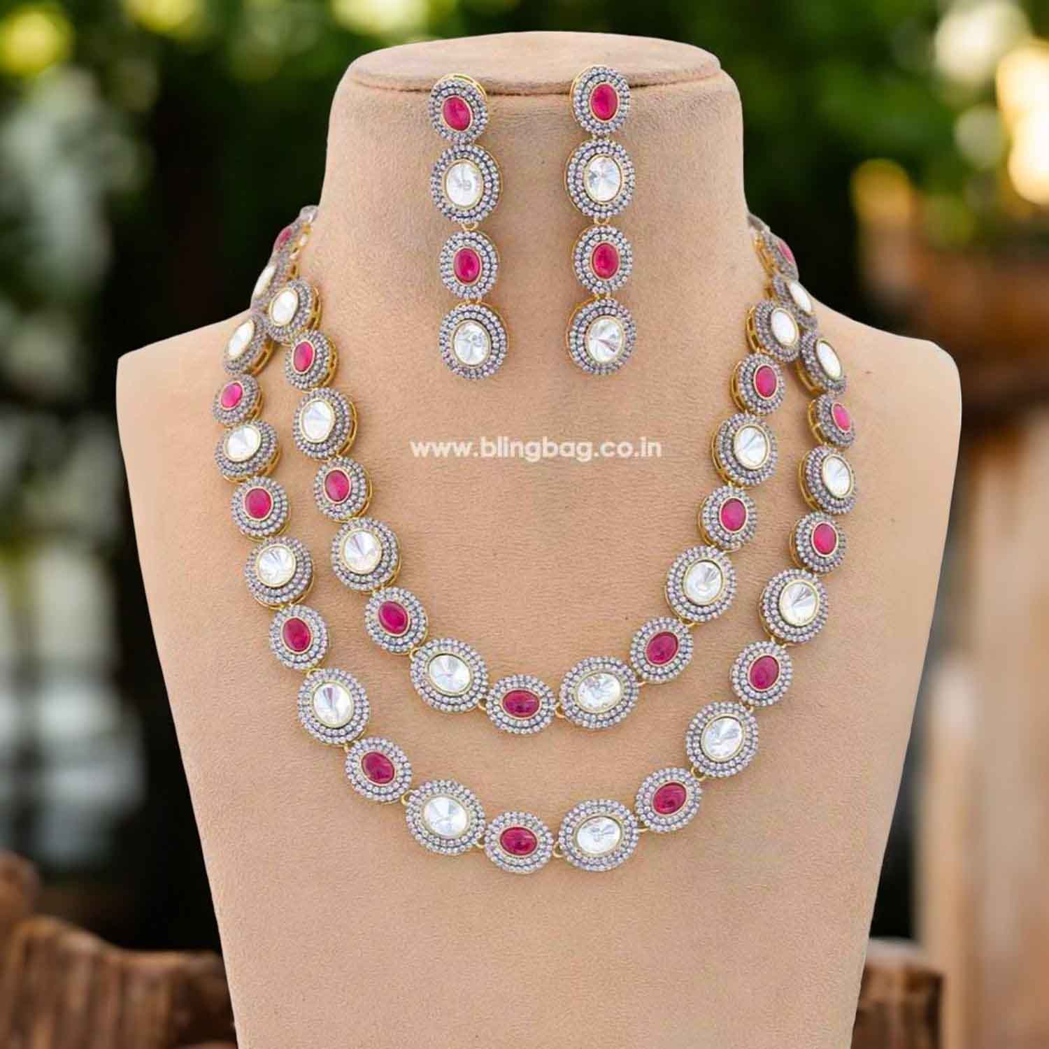 Premium quality american diamond set with superb gemstones crafted for festive wedding and your upcoming special occasions.