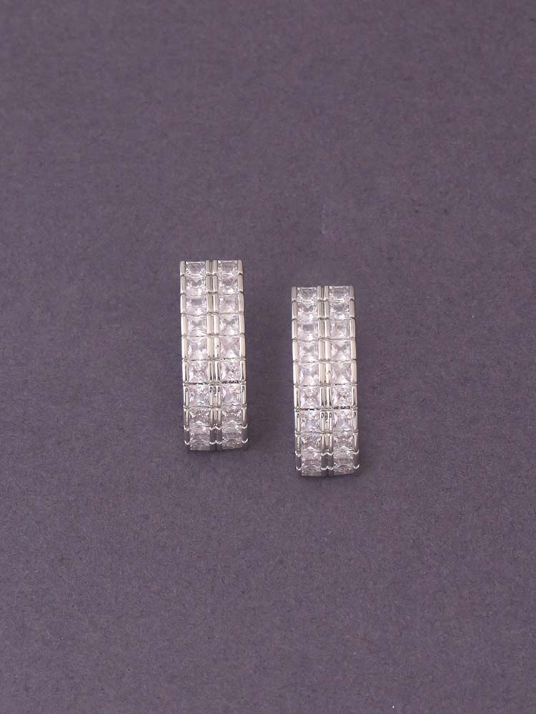 Sparkling elegance meets affordability with these exquisite American diamond earrings. Crafted with precision and adorned with dazzling simulated diamonds, these earrings effortlessly elevate any ensemble. The perfect accessory for adding a touch of glamour and sophistication to your look.""