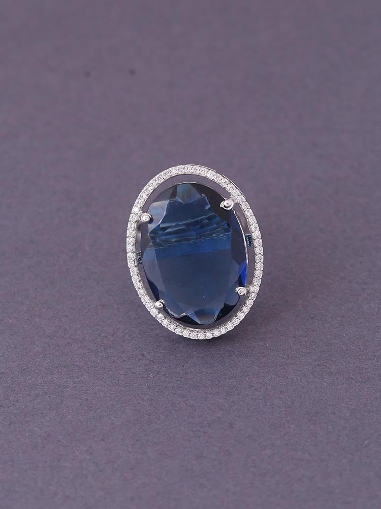 Silver Navy Estelle Zirconia Ring