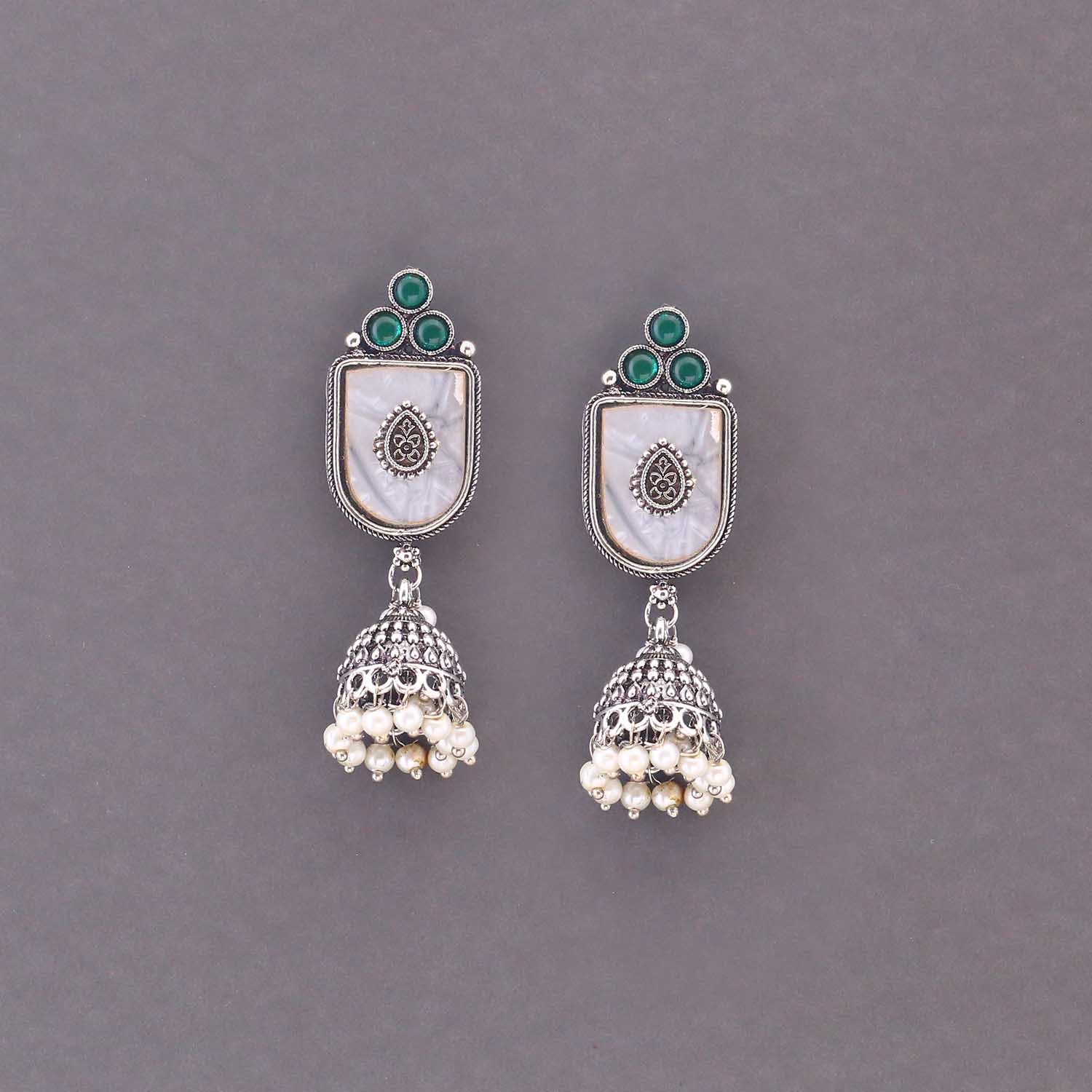 Silver Rajmini Oxidised Jhumkis