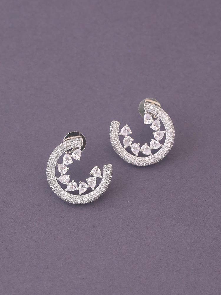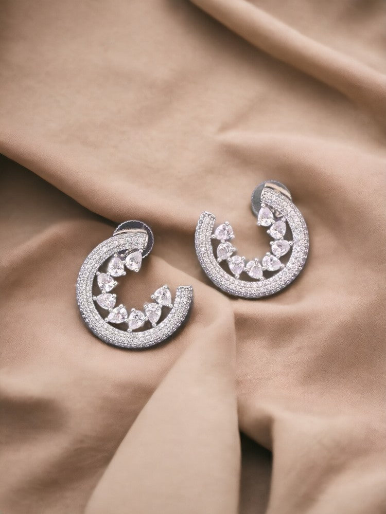 Sparkling elegance meets affordability with these exquisite American diamond earrings. Crafted with precision and adorned with dazzling simulated diamonds, these earrings effortlessly elevate any ensemble. The perfect accessory for adding a touch of glamour and sophistication to your look."