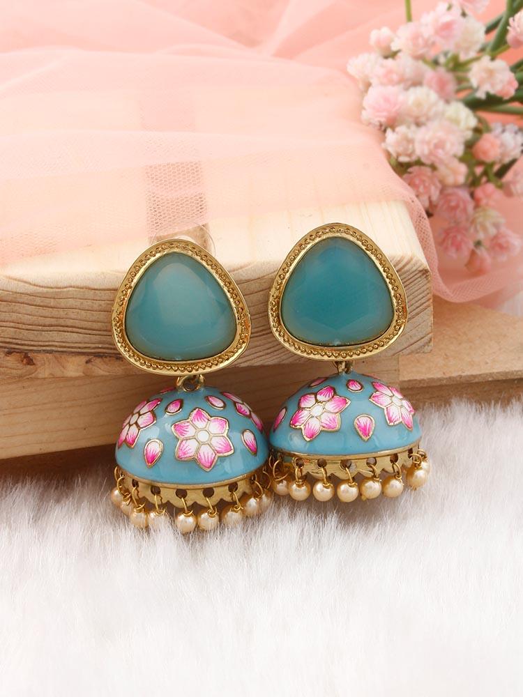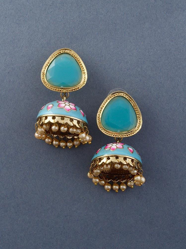 Turquoise Shesha Meenakari Jhumkis
