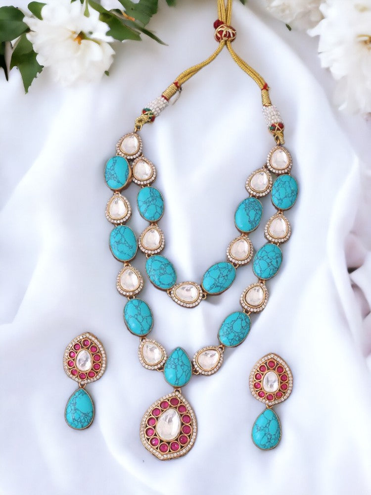 Turquoise Jiyana Kundan Jewellery Set